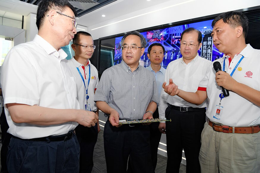 2017年7月29日上午,中央政治局委员、广东省委书记胡春华在广东省委副书记、广州市委书记任学峰、广东省委秘书长江凌、副省长黄宁生等领导陪同下赴广州市企业调研,星空官网(集团)智能科技有限公司官网作为被调研企业之一,公司董事长孙超向胡春华书记介绍了公司的发展历程,研发中心总经理朱勇杰介绍了公司自主研发的专用高性能计算平台这一核心技术的研发历程、国内外的行业地位、发展前景等。